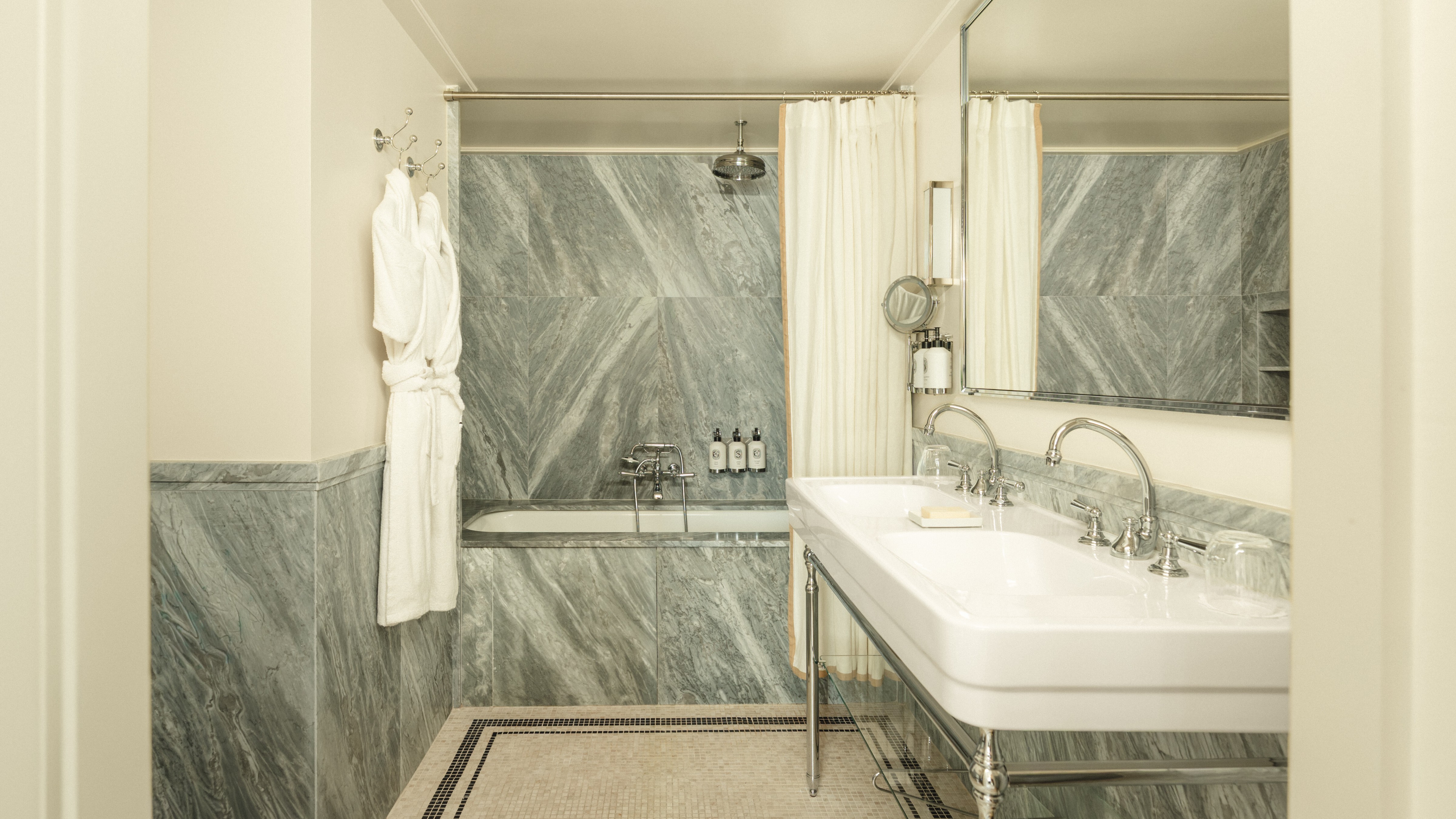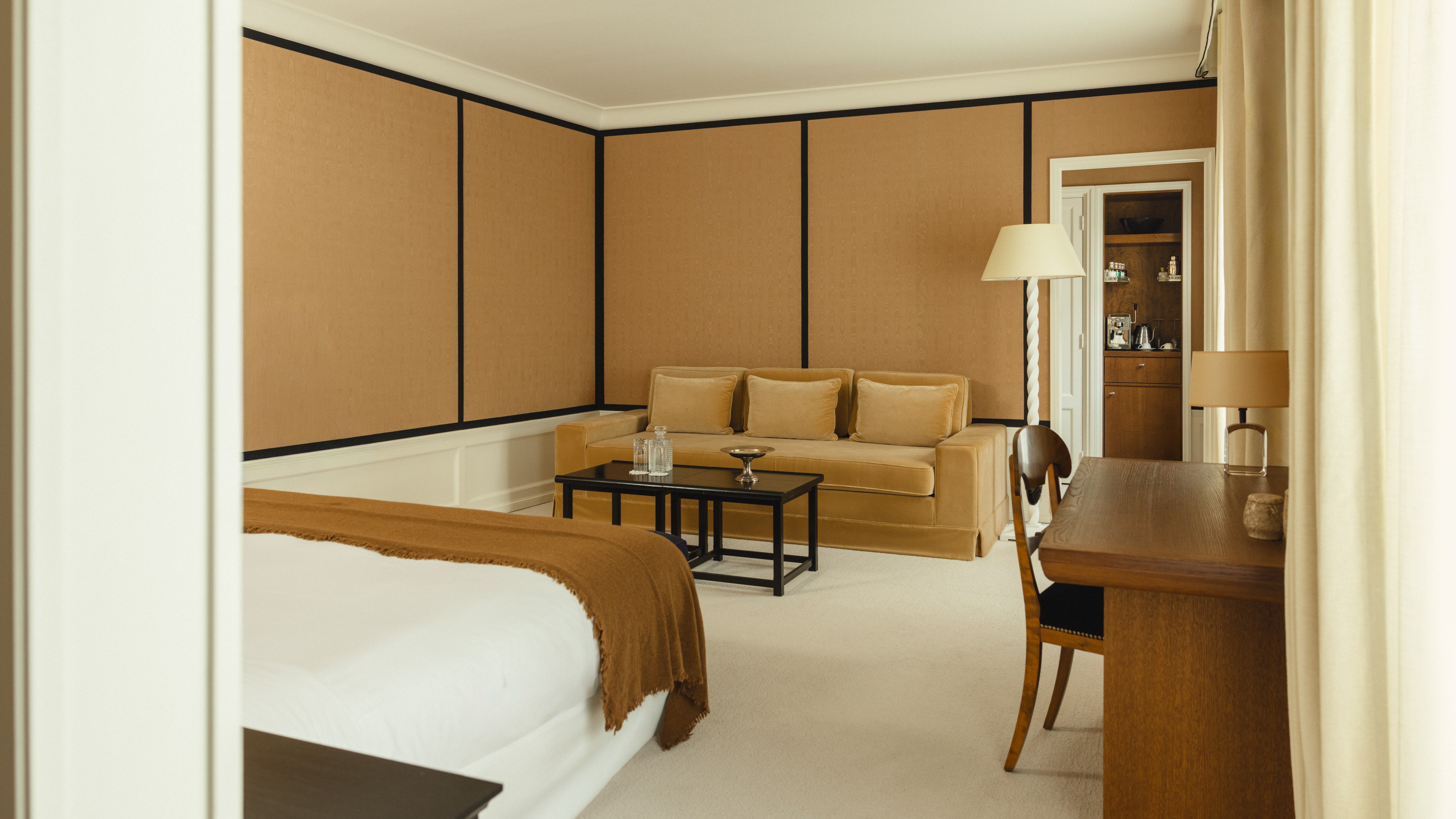 With their warm colors and refined style, the Junior Suites are a quintessentially Parisian haven, featuring a sitting area and accommodating up to three guests with the use of a velvet sofa bed. Located on floors 1 to 5, they offer views of Rue Balzac, Rue Lord Byron, and the inner courtyard. Some suites overlook the rooftops of Paris with glimpses of the Eiffel Tower. Adorned with marble and occasionally wood, the bathrooms offer either a bathtub or a shower.