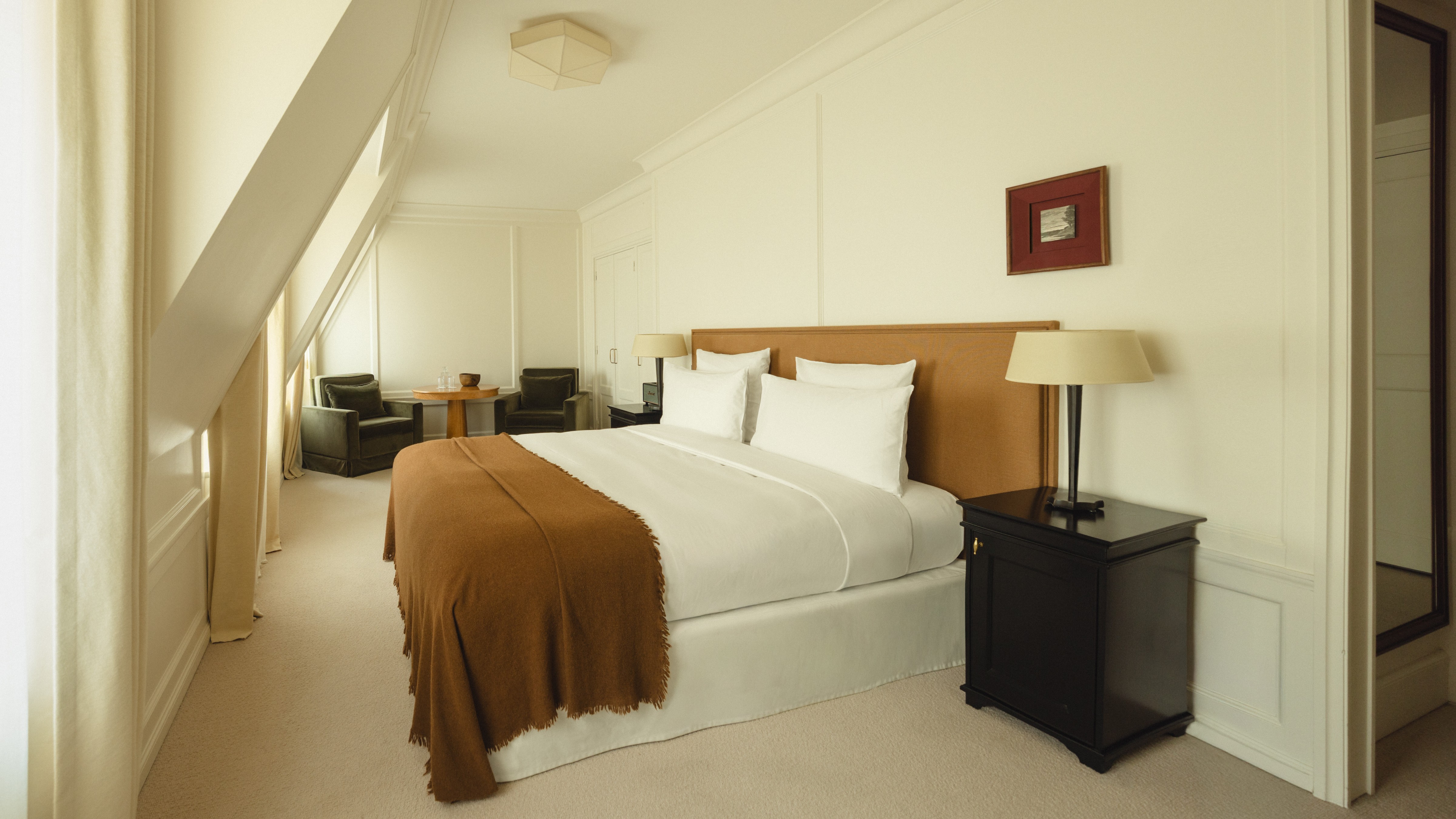 Os quartos Deluxe convidam você a aproveitar a vida no coração da Cidade Luz. Com um sofá ou duas poltronas, acomodam 2 pessoas e oferecem vista para as ruas Balzac ou Lord Byron, estando localizados dos andares 1 a 5. Alguns têm vista para os telhados de Paris e oferecem uma vista parcial da Torre Eiffel. Os banheiros com piso em mosaico de mármore dispõem de banheira ou chuveiro e, em alguns casos, os painéis de madeira destacam o mármore precioso.